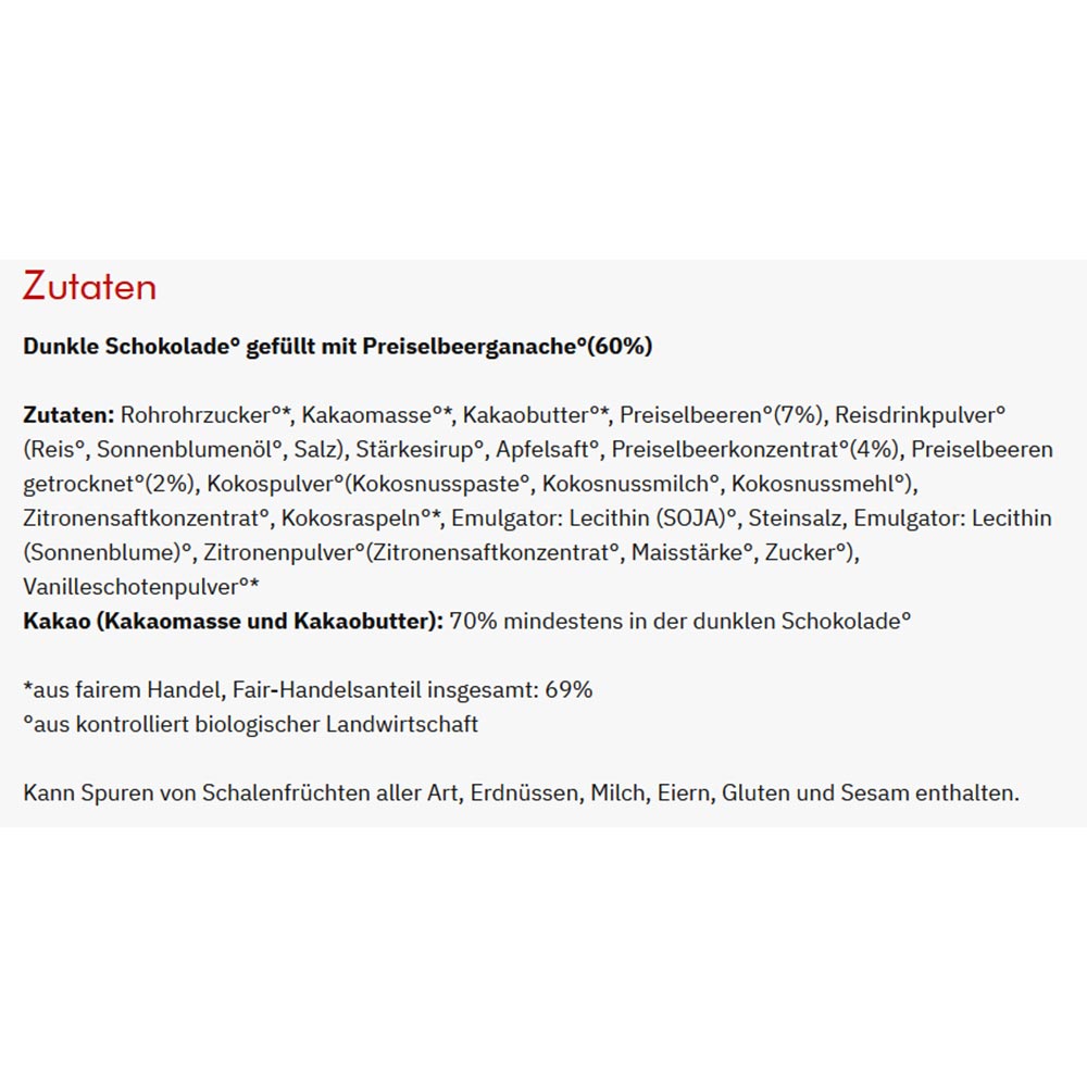 Zotter Schokolade „Schöne Weihnachtszeit“ – Preiselbeer, bio°, 70g, in 70% Nobelbitterschokolade, vegan